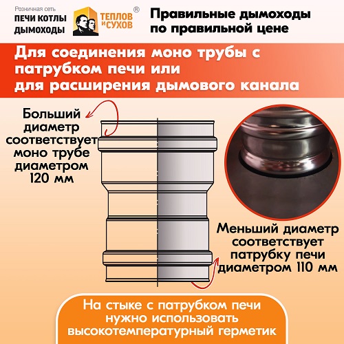 Переходник печной трубы от Теплов и Сухов герметичен и в процессе эксплуатации не лопается.