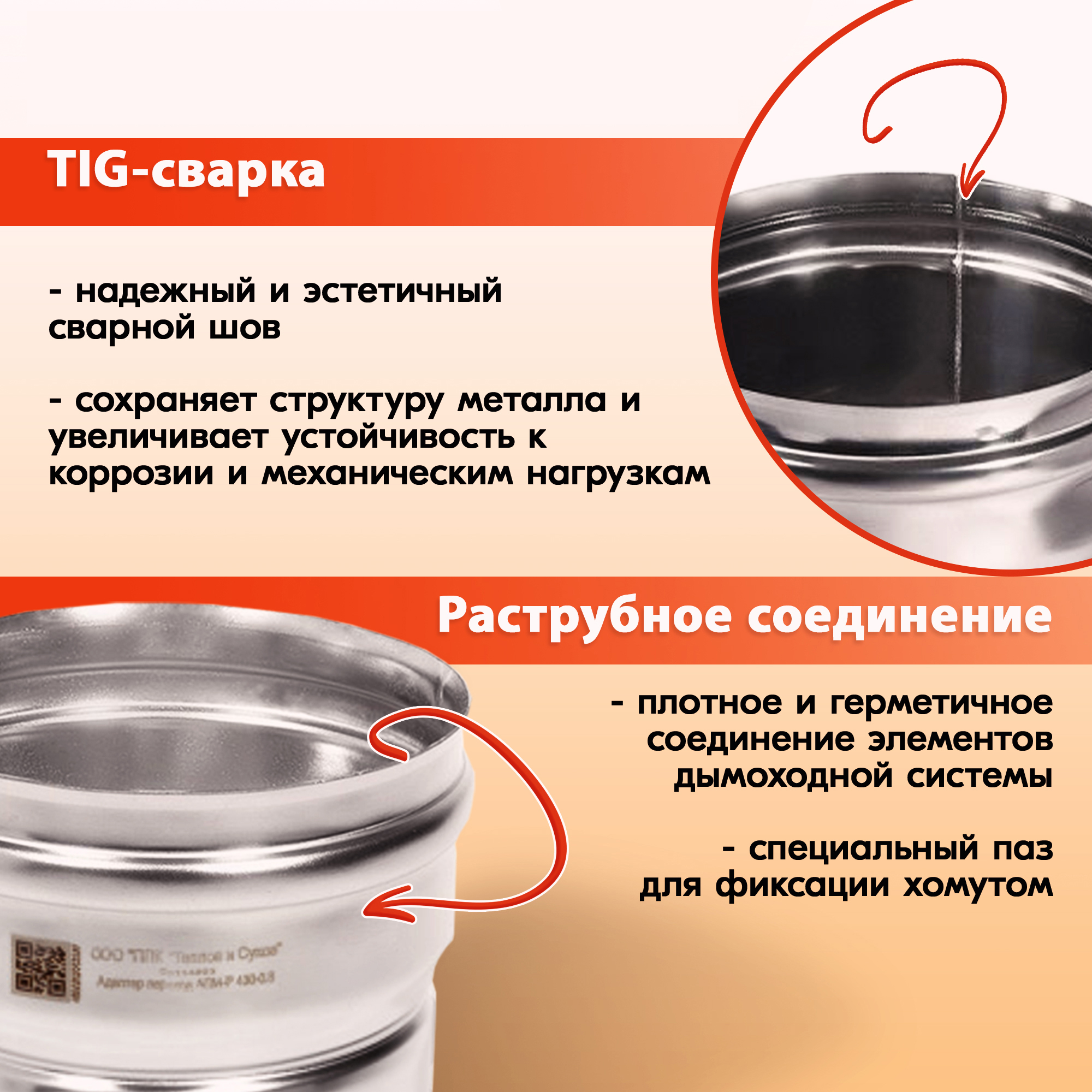 При изготовлении адаптера дымохода Моно используется сварка TIG – это сварка встык в среде аргона с применением аустенитной проволоки.