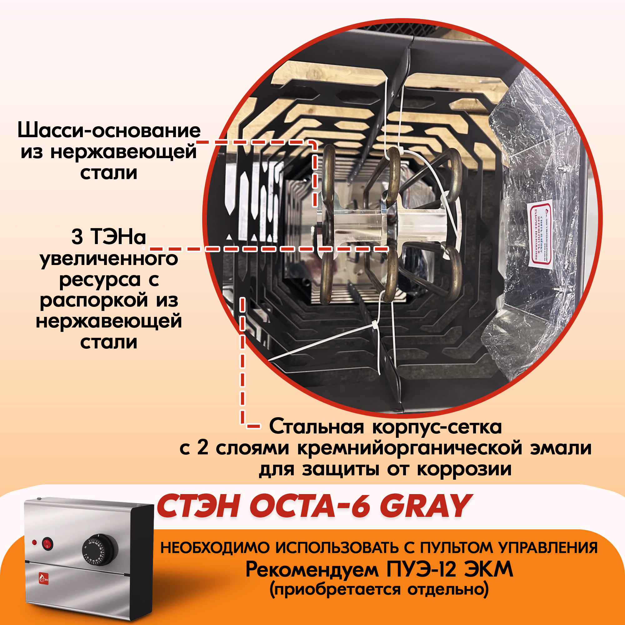 Электрическая каменка СТЭН ЭКМ 6 Octa gray в Перми | Доставка по России