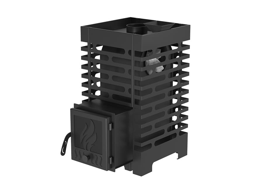 Большая масса камней, закладываемых в сетку-кожух печи, обеспечивает стабильность температуры в парилке и является мощным парогенератором.