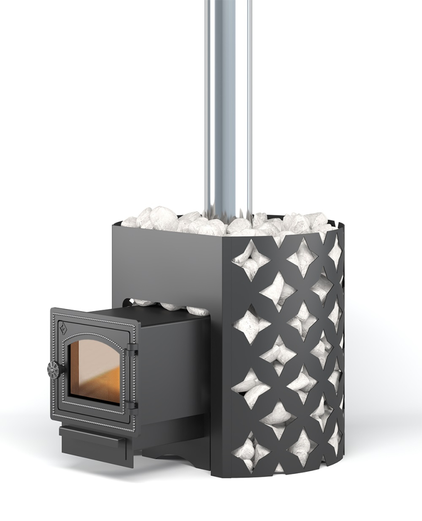Кожух для открытой каменки диаметром 620 миллиметров вмещает в себя до 140 килограммов камней крупной и средней фракции.