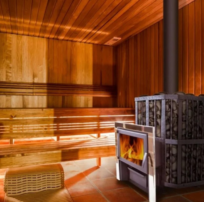 -Большое панорамное стекло для эстетичного вида банной печи;