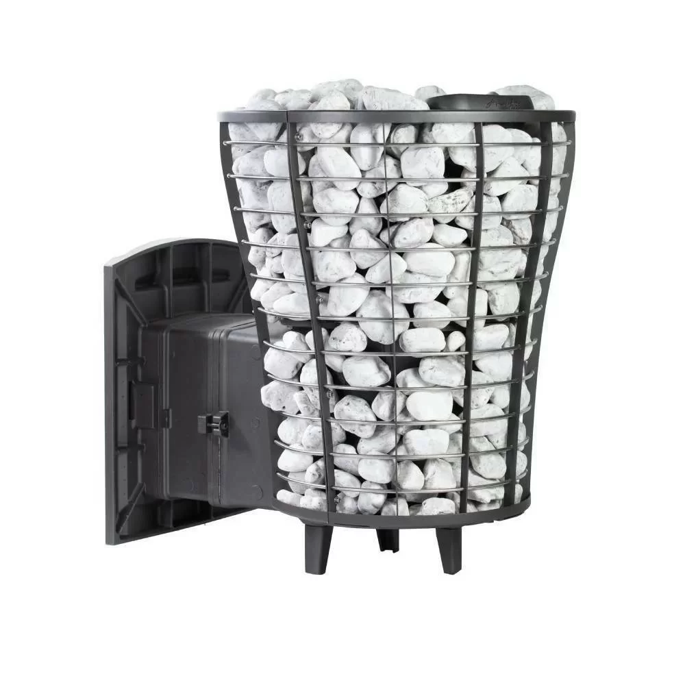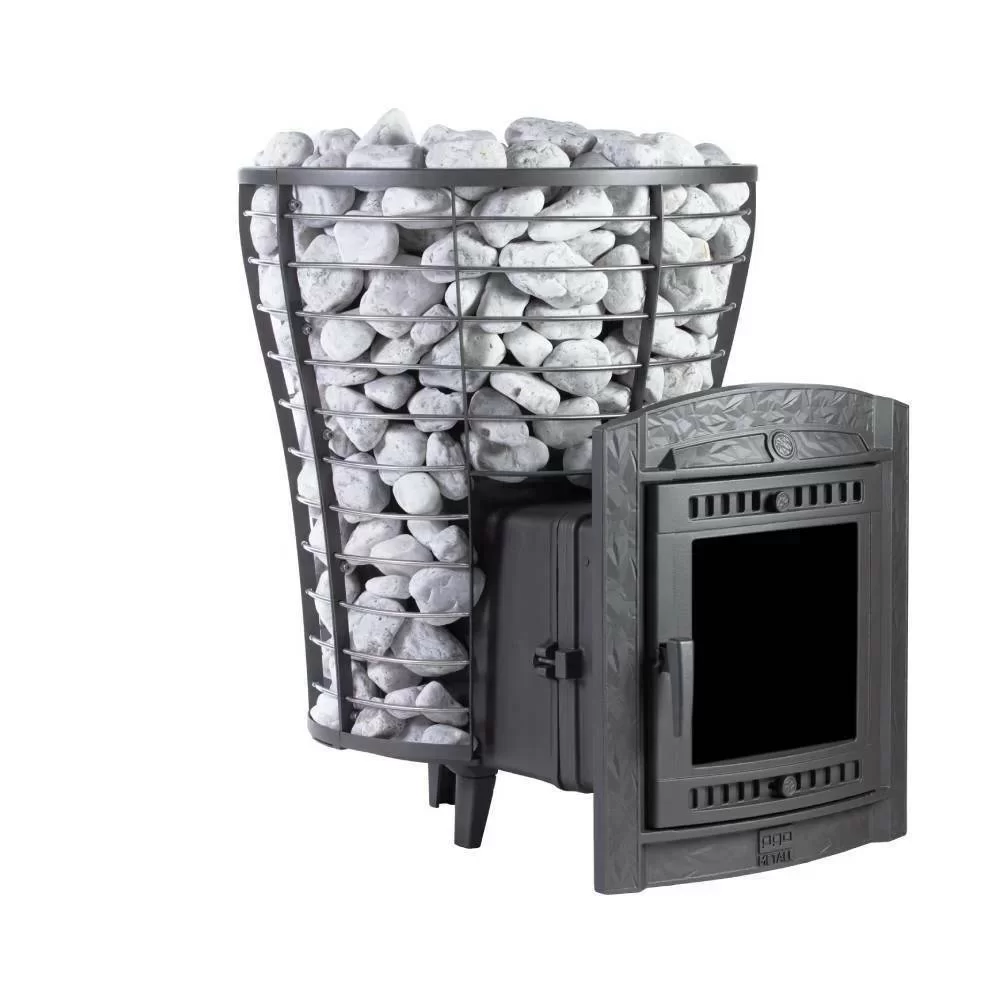 Модель повышенной мощности, обеспечит максимальное количество пара в больших помещениях. Кожух печи изготовлен в виде сетки из нержавеющей стали с прямоугольными ячейками и полностью заполняется природными камнями, обеспечивая высокую динамику нагрева парильного помещения.