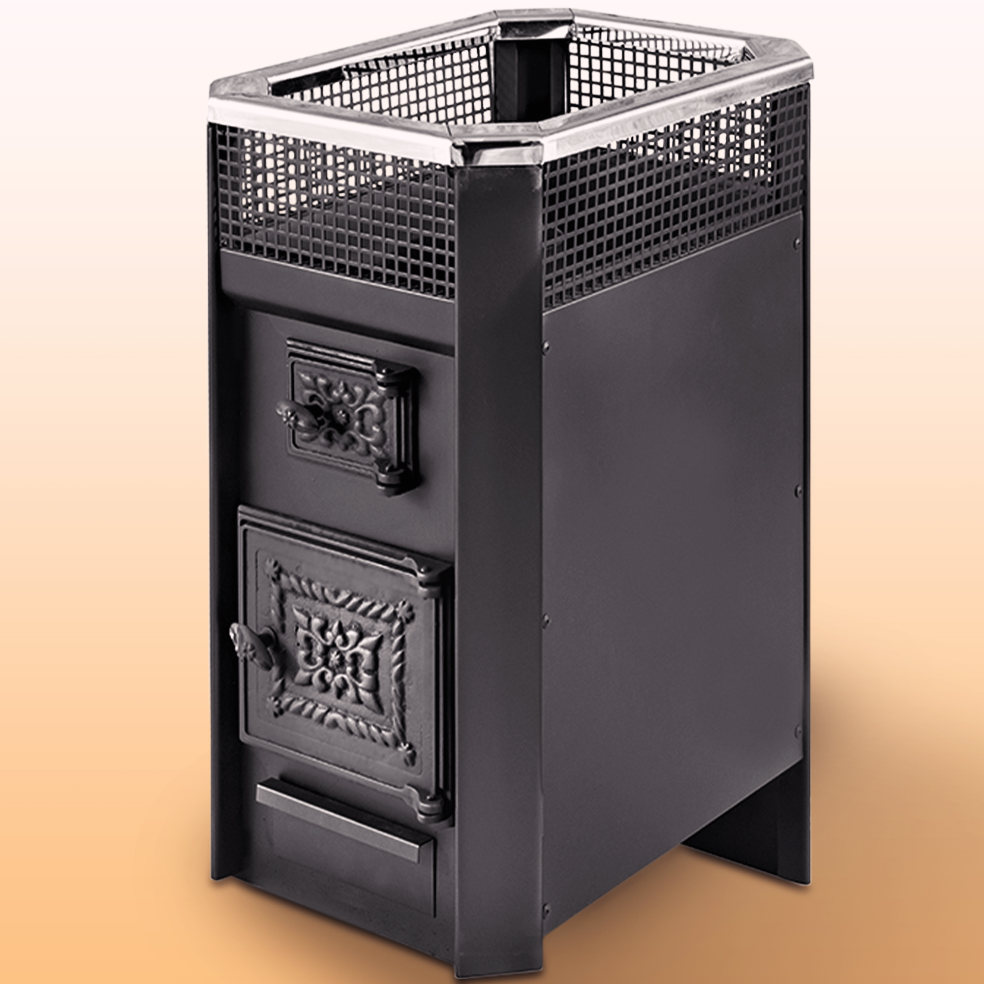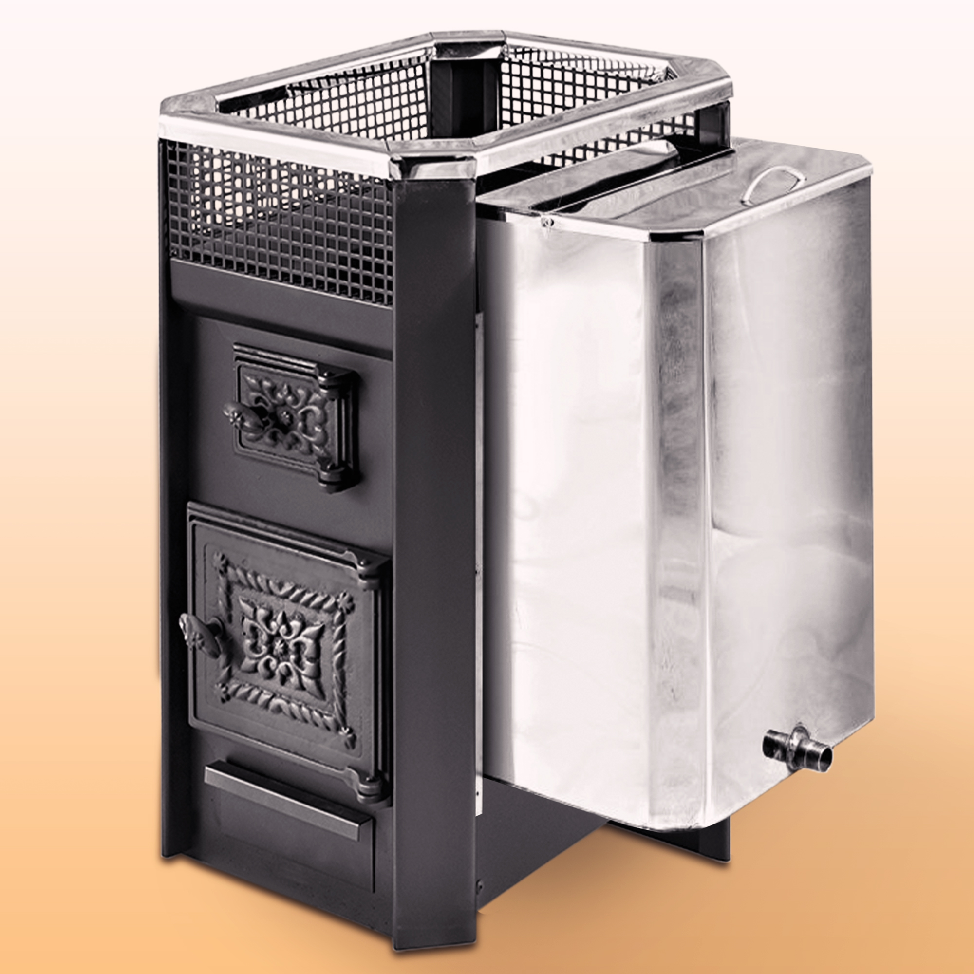 Приятные особенности данной модели печи для бани на дровах – увеличенная толщина стали 8 мм и отличная теплоотдача, быстрый и равномерный прогрев бани, воды, камней при небольшом расходе дров.