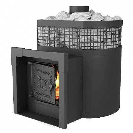 Печи банные из толстостенных труб, имеют практически не ограниченный срок службы! Такие конструкции часто встречаются в бытовых и коммерческих банях, причем печи были установлены 15-20 и более лет назад. Секрет долговечности прост- тепловая нагрузка в трубе распределяется равномерно, отсутствие стыковочных сварных соединений и простая ремонтопригодность. Камни в банной печи из трубы, соприкасаются напрямую с топкой, в результате чего прогреваются до огромных температур, одновременно снимая избыточную нагрузку с металла