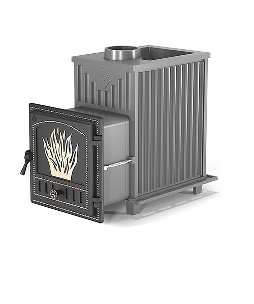 Печь укомплектована глухой чугунной топочной дверцей 28.