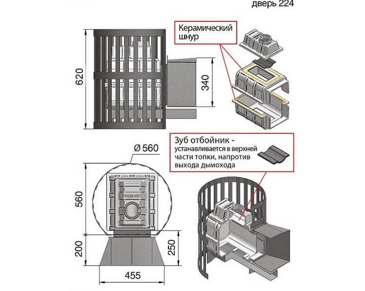 Быстро отапливает парилку, расход дров минимальный, большая, красивая дверка с поддувалом