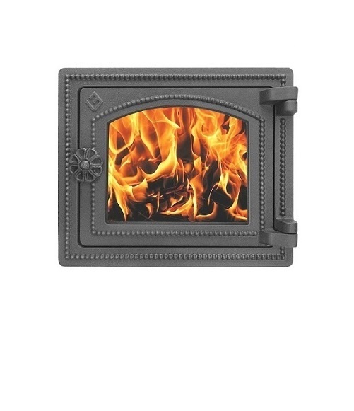 Чугунная дверца топки с термостойким стеклом для наблюдения за процессом горения дров;
