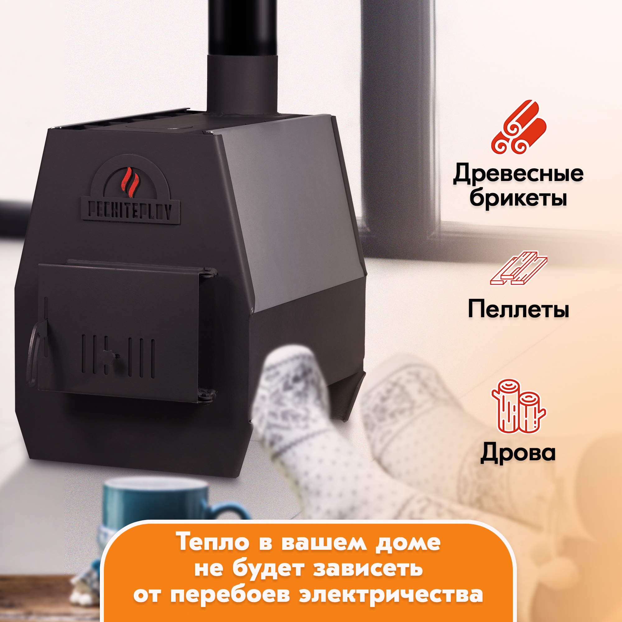 Печь длительного горения PECHITEPLOV является идеальным вариантом отопления помещения при минимальном расходе топлива, при этом тепло в вашем доме не будет зависеть от перебоев электричества.