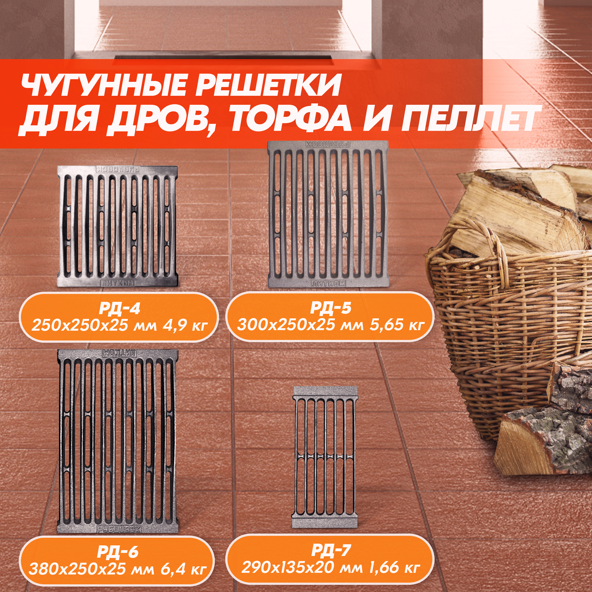 Модели колосниковых решеток для дров от Рубцовского завода ЛИТКОМ также пригодны к топке торфом или пеллетами.
