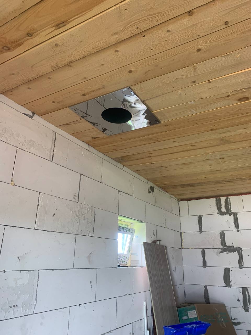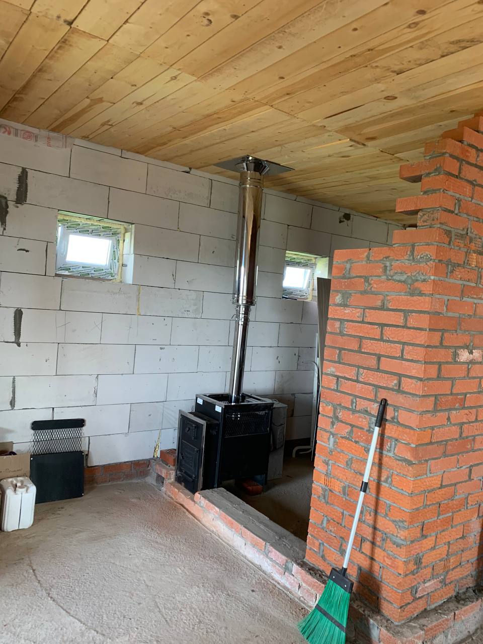 Монтаж банной печи  Радуга ПБ-21Б с установкой дымохода Тис